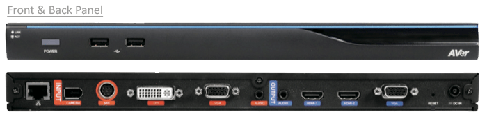 - One-touch recording – Record your video conferences- including video, audio and shared content- directly to a USB flash drive, creating video archives that help avoid post-meeting information loss. Play back recorded meetings on your EVC350 or on your PC using AVer’s VCPlayer software.