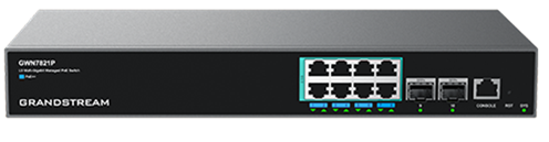 The Grandstream GWN7821P is a Layer 3 multi-gigabit managed PoE switch that allows medium-to-large enterprises to build scalable, secure, high performance and smart business networks that are fully manageable. It supports advanced VLAN for flexible and sophisticated traffic segmentation, advanced QoS for prioritization of network traffic, IGMP/MLD Snooping for network performance optimization, comprehensive security capabilities against potential attacks, and provides smart dynamic PoE output to power IP phones, IP cameras, Wi-Fi access points and other PoE endpoints.